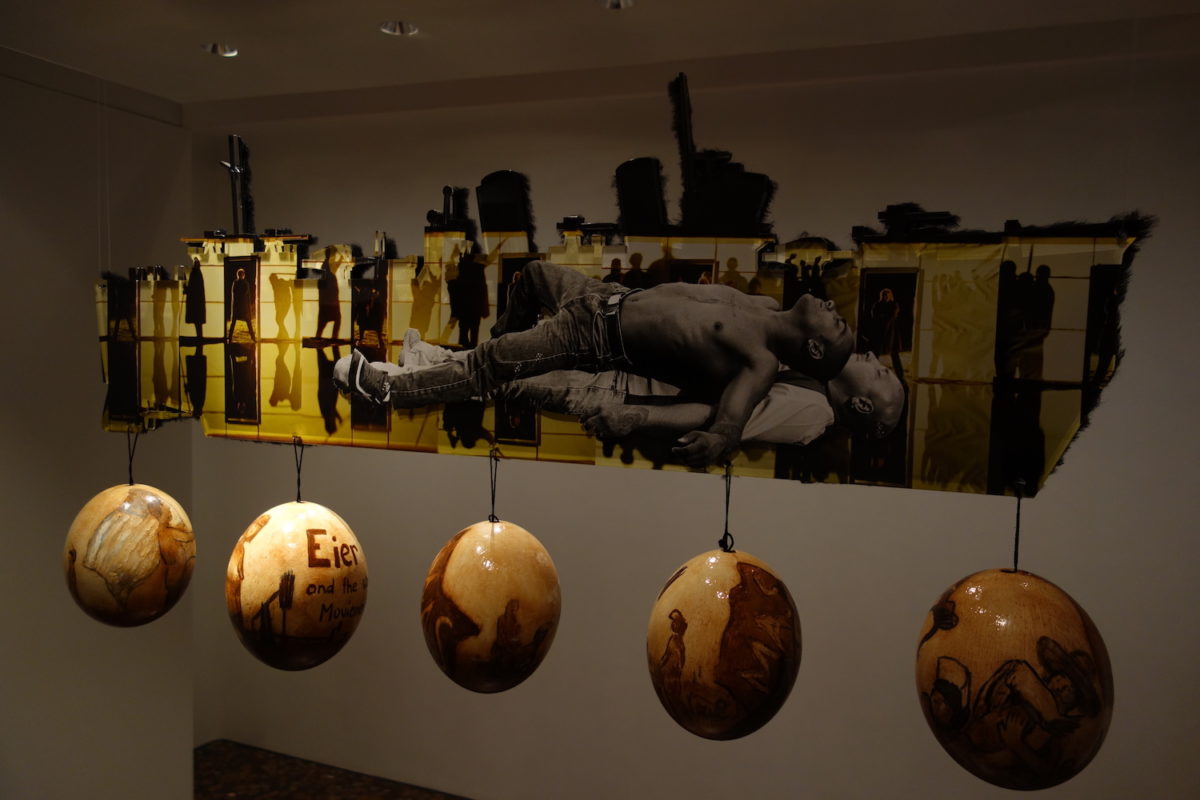 Doch wie die Positionen auf dem Sklavenschiff hochmobil, mehrfach kodiert und daher tendenziell unlesbar sind, gilt auch von diesen Episoden, dass sich Täterinnen und Opfer in vielen Fällen schwer nur unterscheiden lassen. Tatsächlich hat Doujaks Installation, die sich jeder vereinheitlichenden Betrachtung sperrt, den Ausnahmezustand in ihre Form integriert: sind die Eier dreidimensional, sind die Schiffe flach. Ist das Plexiglas kantig, so ist das Fell weich. Hat die Malereioberfläche eine Haptik, zeigt die fotografische Oberfläche mechanische Glätte. All diese formalen Eigenheiten bedeuten für sich genommen nichts. Dennoch bilden sie die Voraussetzung über alles Bekannte hinauszugehen.