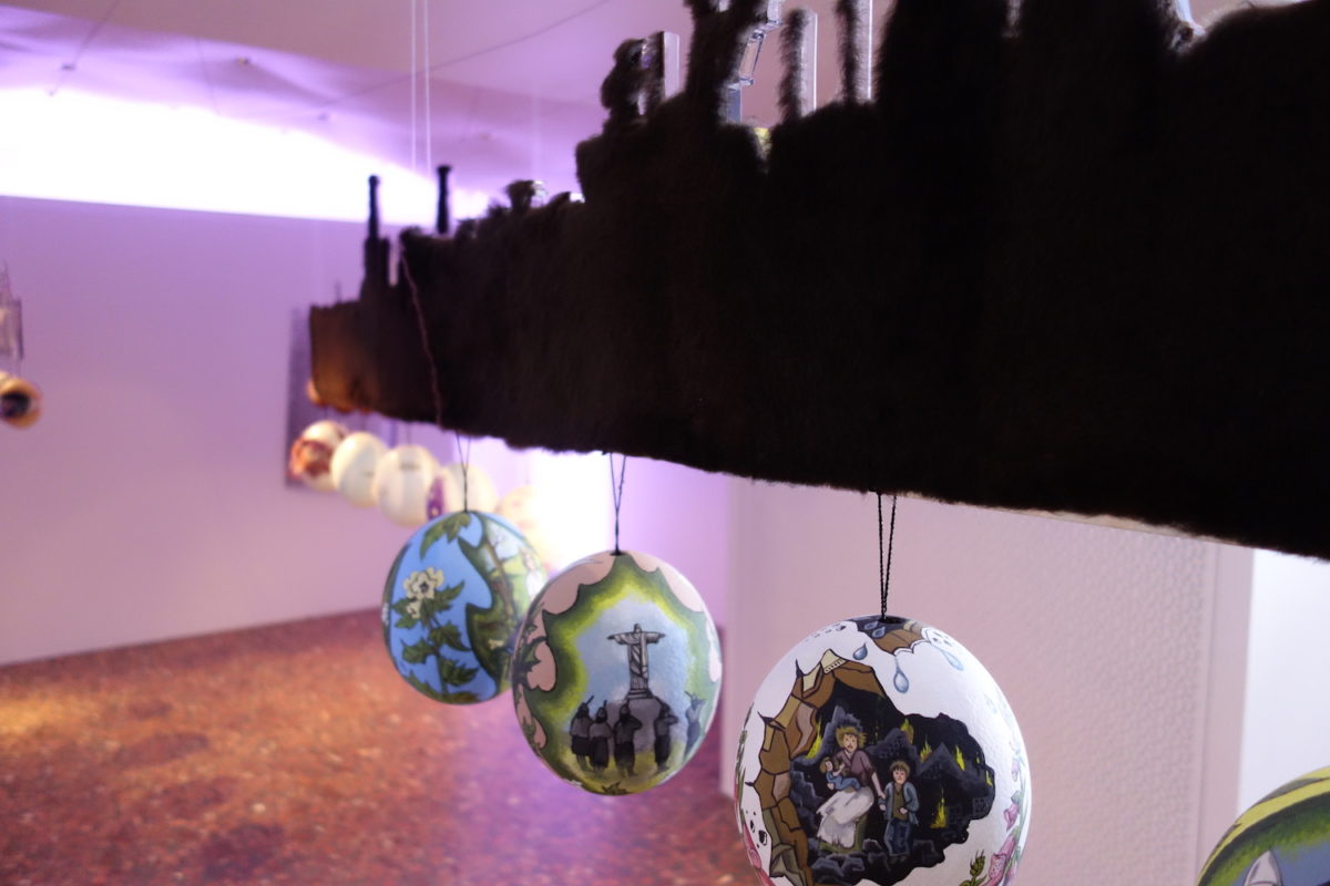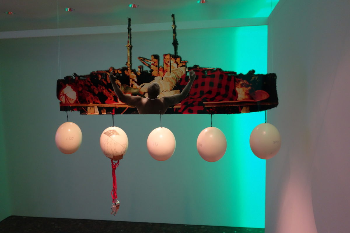 Die Straußeneier schließlich, welche die Schiffe als ihre Fracht tragen, sind mit Szenen bemalt und Daten versehen. Doujak hat unterschiedliche Künstlerinnen und Künstler, aber auch Laien den Auftrag erteilt historische Episoden, genauer: Revolten und Kämpfe darzustellen, bei denen Frauen eine Schlüsselrolle zukommt. So hat Clarissa Metternich die Aktion einer Selbstmordattentäterin im tschetschenischen Freiheitskampf festgehalten. Andere Eierfolgen widmen sich Organisationen gegen den Frauenhandel, den Mujeres Libres im spanischen Bürgerkrieg oder den bewaffneten Frauenbrigaden im kurdischen Widerstand.