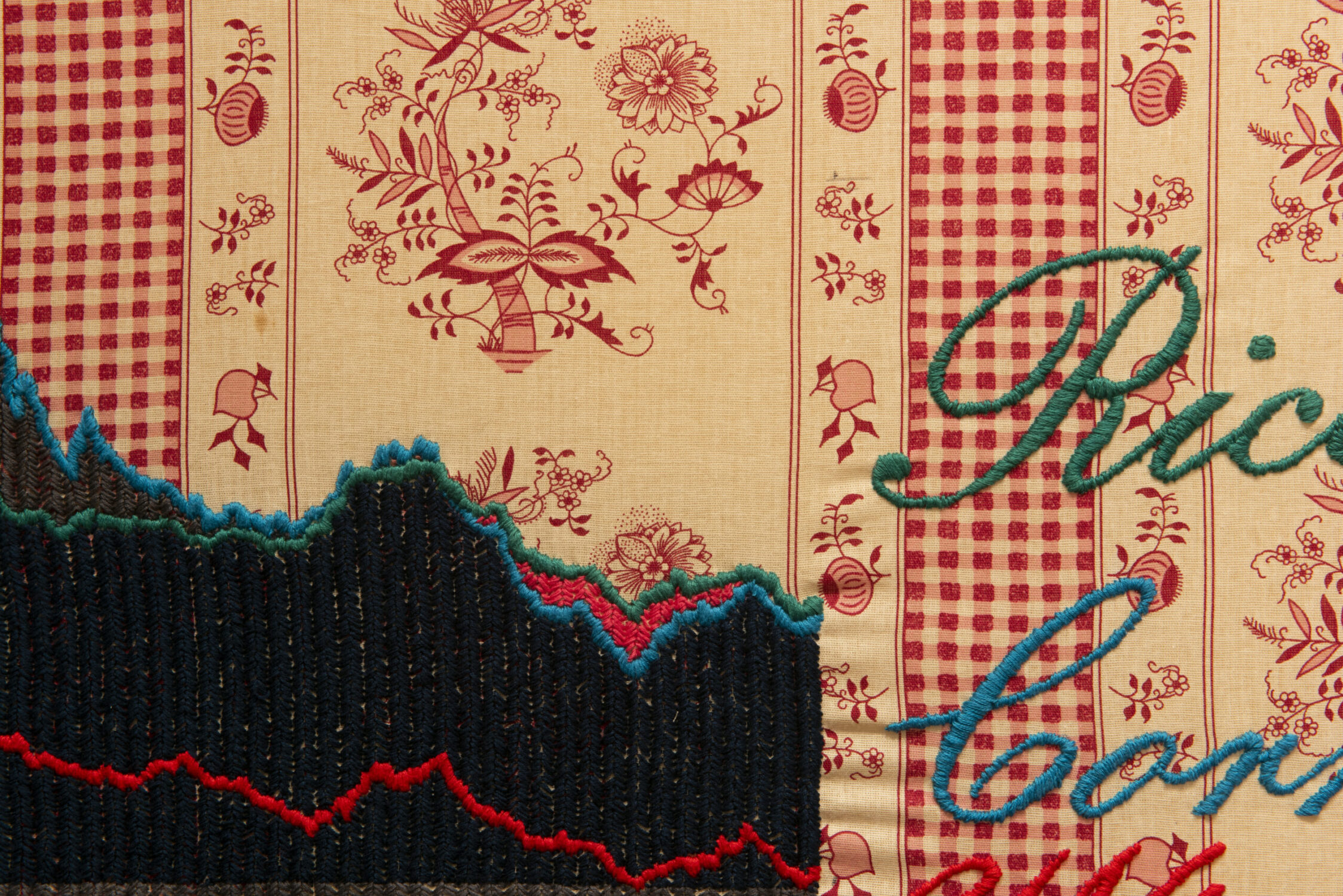 Werkdetail, Maja Bajevic, Arts, Crafts, and Facts (Rice, Corn, Wheat), Stickerei auf Baumwolle, 2015. Sammlung Johann Jacobs Museum. Foto: Axel Crettenand.