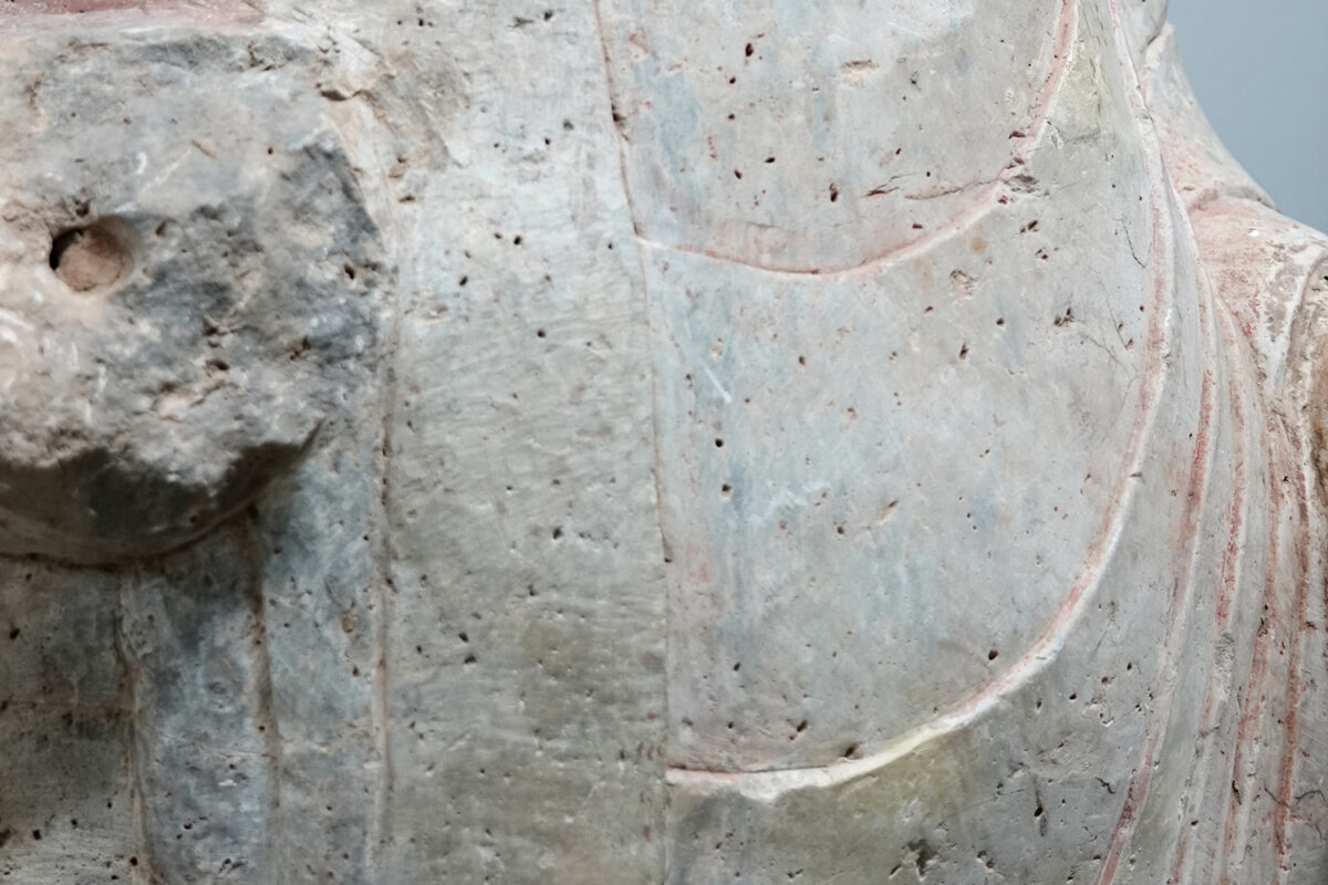 Nördliche Qi-Buddha-Figur, China, Mitte des 6. Jahrhunderts. Sammlung DKM.